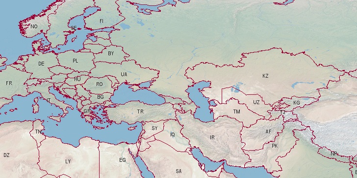 Note: Boundary lines on world map are drawn using data from our site. Click on flag to hide it.