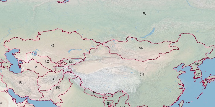 Mongolia boundaries on map